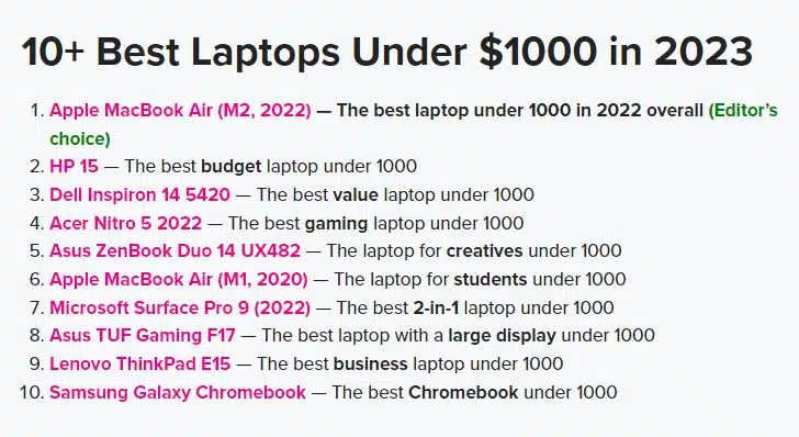 Best Budget: The products under the best budget category are pocket-friendly for users and provide a more than decent performance. So, anyone who has a budget constraint can look out for the budget tag in the listicles and guides.